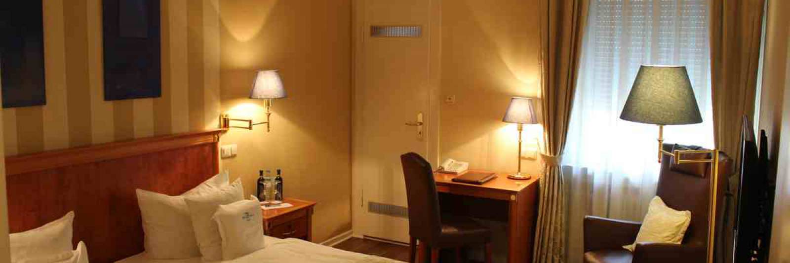 Unsere Doppelzimmer sind mit Schallschutzfenstern und zusätzlich mit Außenrollläden ausgestattet,